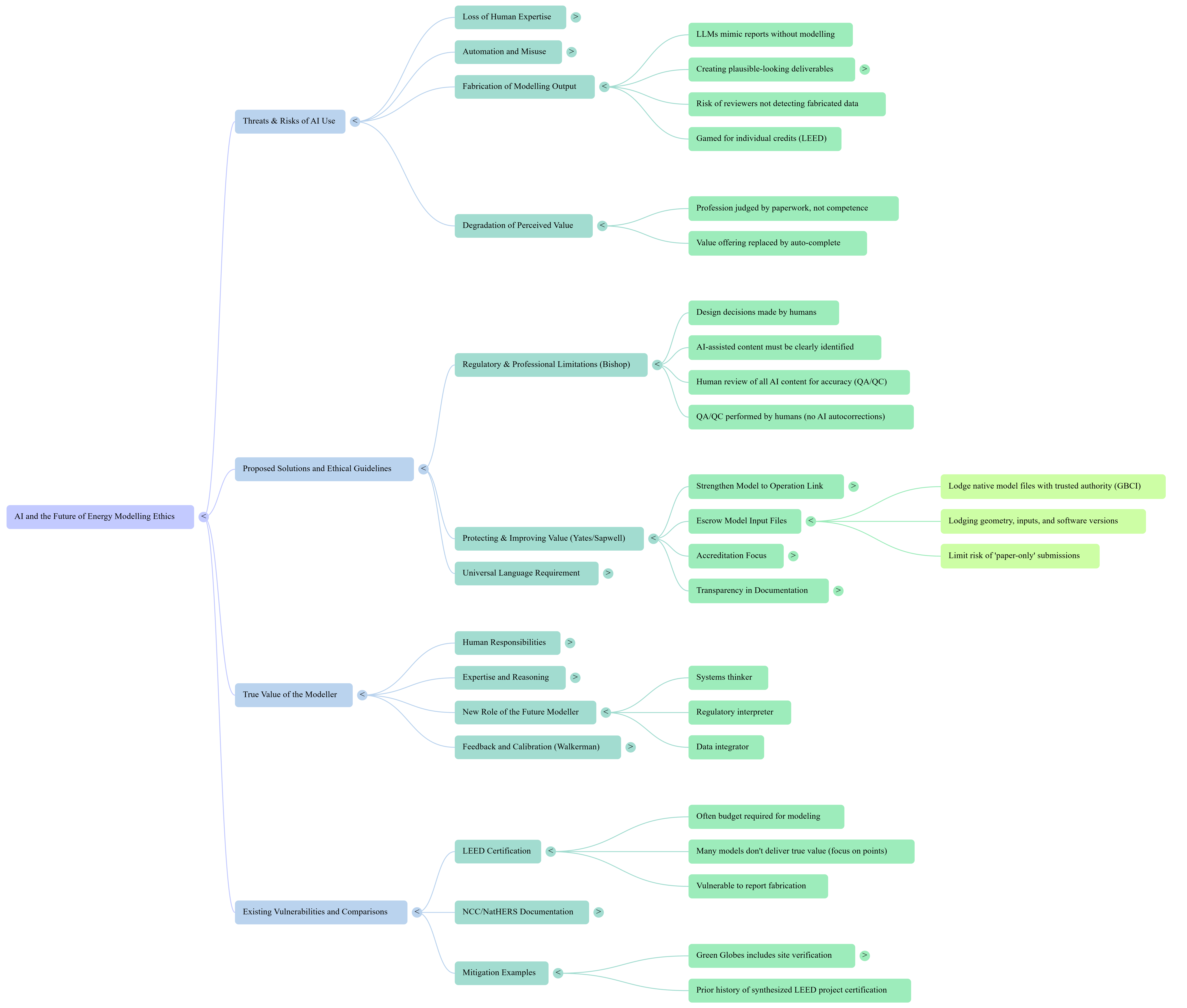 Sure, we can do damage control by proposing specific new requirements for some types of projects, but there are many applications of energy modeling and we should strive for adopting some simple, elegant, universal language and limitations governing AI use that can be applied to all energy modeling projects. All professions should be developing and adopting revised ethical codes to limit the real and perceived short- and long-term damage to the value our professions provide. Some ideas for sample language:
