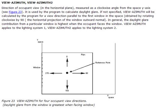 See "VIEW-AZIMUTH" in DOE-2 Help: