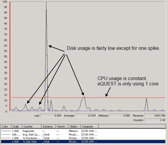 > eQUEST and then dip down several seconds after. The Disk usage is still