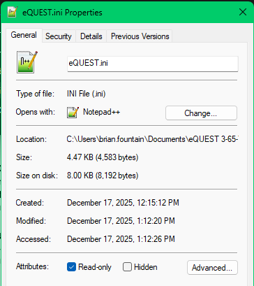 For us, that means eQUEST continues to open as previously expected without having to recopy or edit eQUEST.ini.